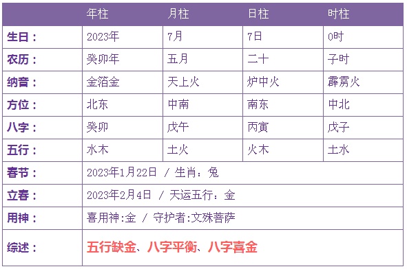 2023年7月7日生辰八字分析:公历生日:2023年 7月 7日 星期五 巨蟹座 (阳历)