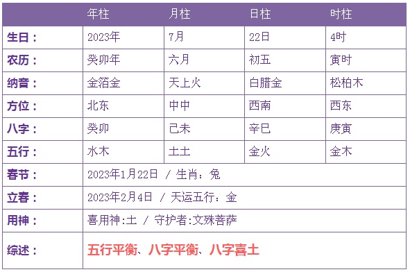 2023年7月22日6时出生的宝宝五行不缺