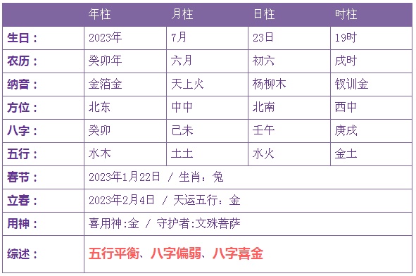 2023年7月23日生辰八字分析:公历生日:2023年 7月 23日 星期日 狮子座 (阳历)
