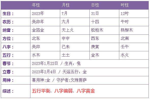 2023年7月31日生辰八字分析:公历生日:2023年 7月 31日 星期一 狮子座 (阳历)
