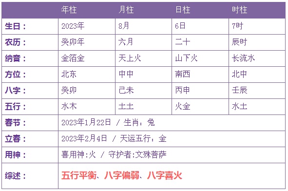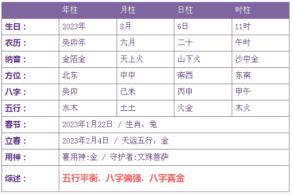 2023年8月6日生辰八字分析:公历生日:2023年 8月 6日 星期日 狮子座 (阳历)