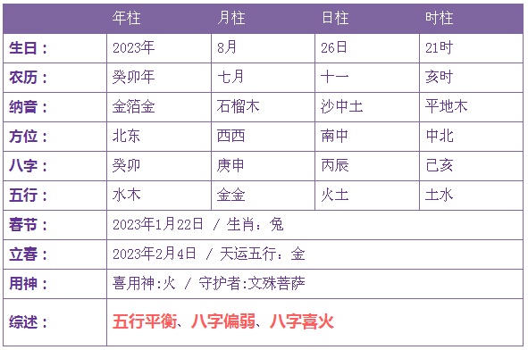 2023年8月26日生辰八字分析:公历生日:2023年 8月 26日 星期六 处女座 (阳历)