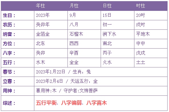 2023年9月15日0时出生的宝宝五行不缺