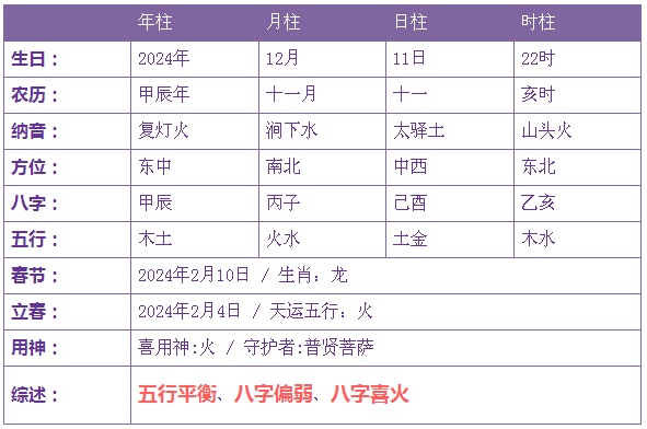 2024年12月11日22时出生的宝宝五行不缺