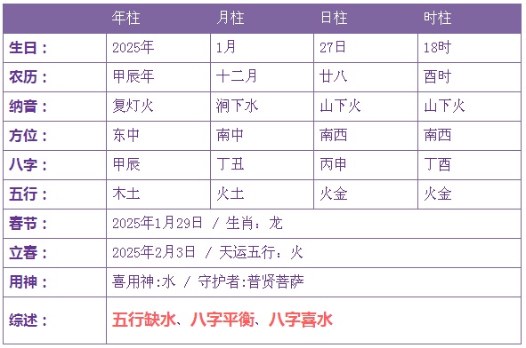 2025年1月27日生辰八字分析:公历生日:2025年 1月 27日 星期一 水瓶座 (阳历)