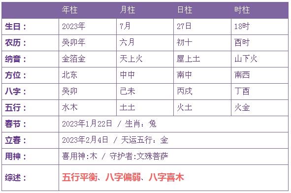 2023年7月27日生辰八字分析:公历生日:2023年 7月 27日 星期四 狮子座 (阳历)