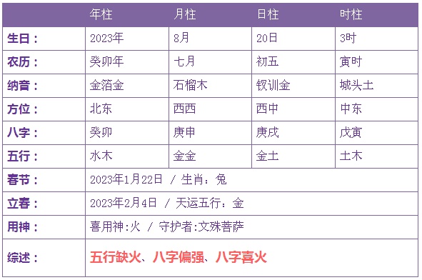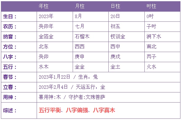 2023年8月20日生辰八字分析:公历生日:2023年 8月 20日 星期日 狮子座 (阳历)