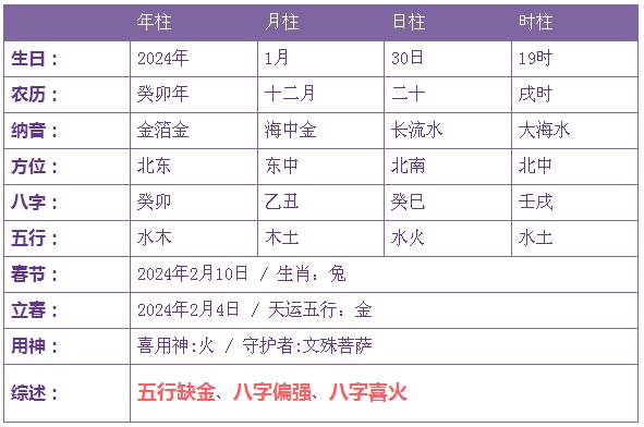 2024年1月30日生辰八字分析:公历生日:2024年 1月 30日 星期二 水瓶座 (阳历)