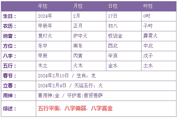2024年2月17日1时出生的宝宝五行不缺