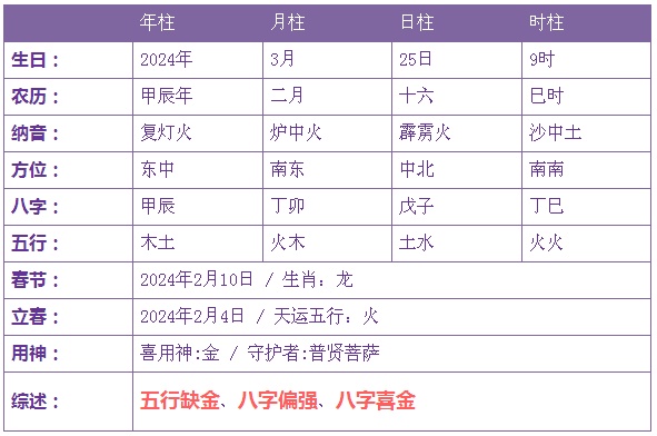 2024年3月25日生辰八字分析:公历生日:2024年 3月 25日 星期一 白羊座 (阳历)