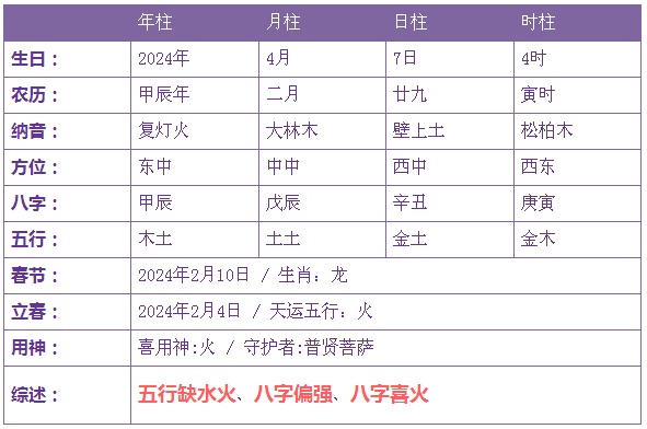 2024年4月7日生辰八字分析:公历生日:2024年 4月 7日 星期日 白羊座 (阳历)