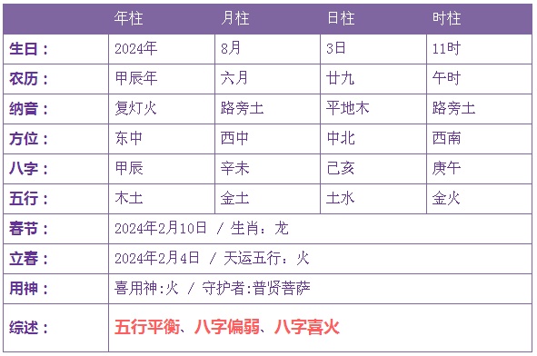 2024年8月3日生辰八字分析:公历生日:2024年 8月 3日 星期六 狮子座 (阳历)