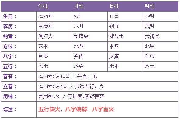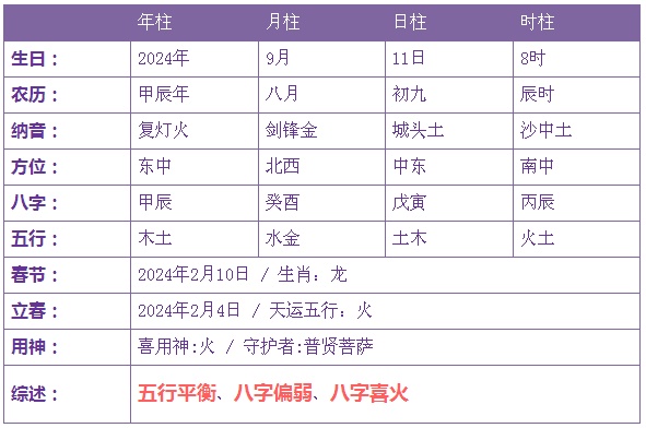 2024年9月11日生辰八字分析:公历生日:2024年 9月 11日 星期三 处女座 (阳历)
