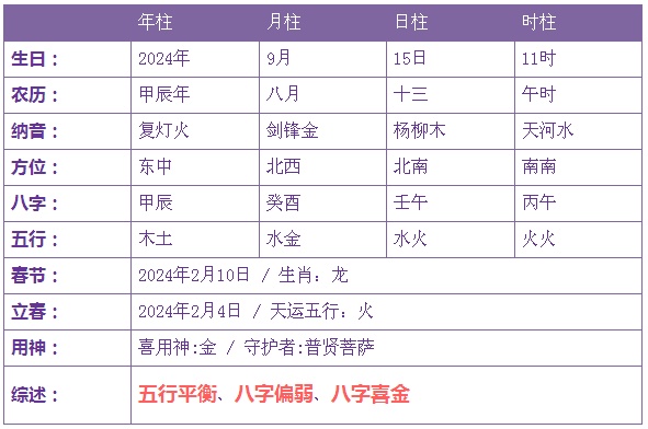 2024年9月15日生辰八字分析:公历生日:2024年 9月 15日 星期日 处女座 (阳历)