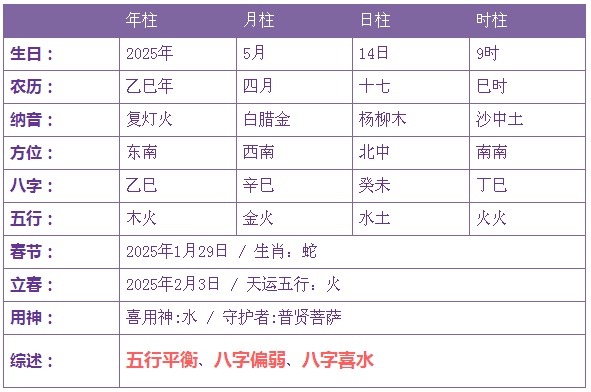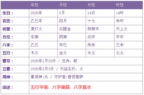 2025年5月14日生辰八字分析:公历生日:2025年 5月 14日 星期三 金牛座 (阳历)