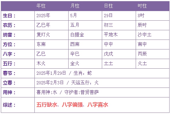 2025年5月29日3时出生的宝宝五行缺水