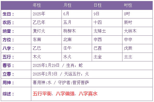 2025年6月9日生辰八字分析:公历生日:2025年 6月 9日 星期一 双子座 (阳历)