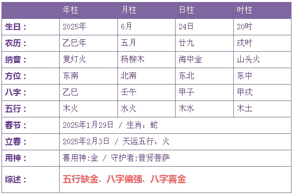2025年6月24日生辰八字分析:公历生日:2025年 6月 24日 星期二 巨蟹座 (阳历)