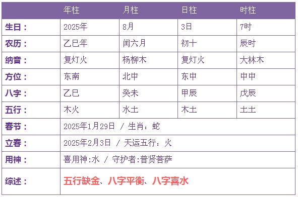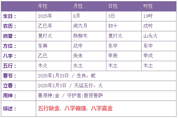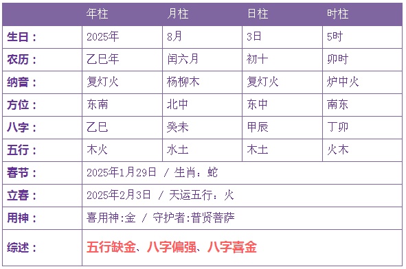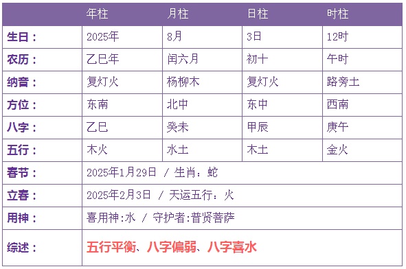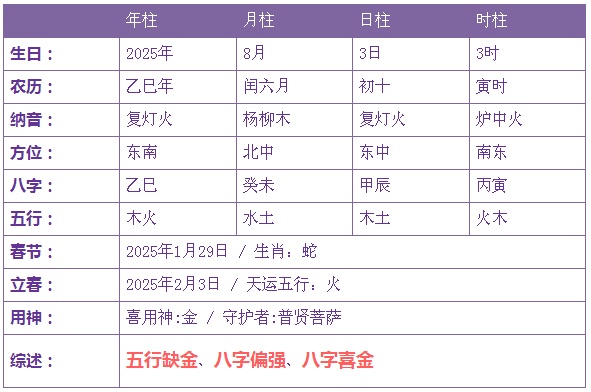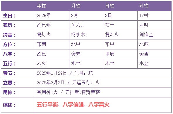 2025年8月3日生辰八字分析:公历生日:2025年 8月 3日 星期日 狮子座 (阳历)