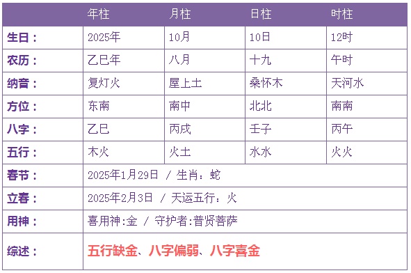 2025年10月10日生辰八字分析:公历生日:2025年 10月 10日 星期五 天秤座 (阳历)