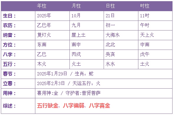 2025年10月21日3时出生的宝宝五行缺金