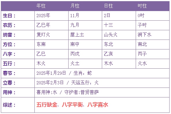 2025年11月2日生辰八字分析:公历生日:2025年 11月 2日 星期日 天蝎座 (阳历)