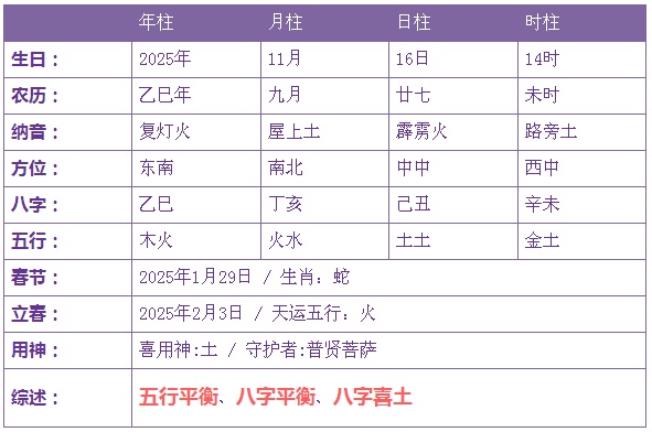 2025年11月16日14时出生的宝宝五行不缺