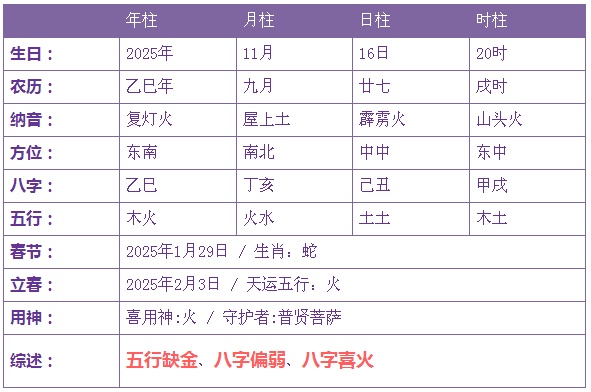 2025年11月16日20时出生的宝宝五行缺金