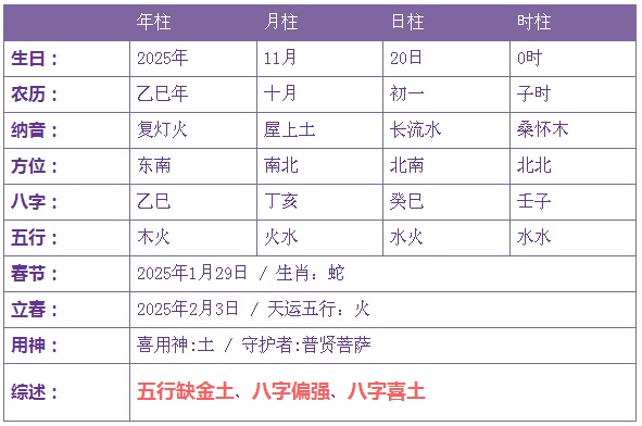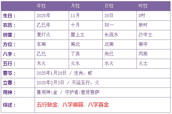 2025年11月20日生辰八字分析:公历生日:2025年 11月 20日 星期四 天蝎座 (阳历)