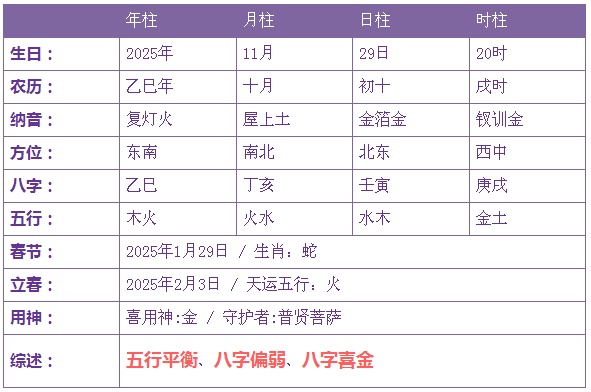2025年11月29日生辰八字分析:公历生日:2025年 11月 29日 星期六 射手座 (阳历)