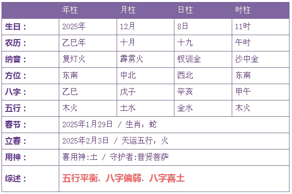 2025年12月8日12时出生的宝宝五行不缺
