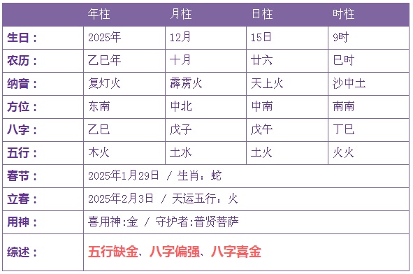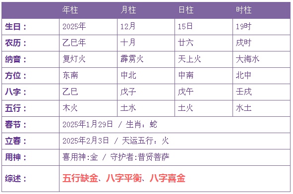 2025年12月15日生辰八字分析:公历生日:2025年 12月 15日 星期一 射手座 (阳历)