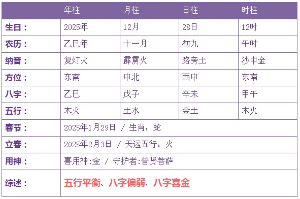 2025年12月28日生辰八字分析:公历生日:2025年 12月 28日 星期日 摩羯座 (阳历)
