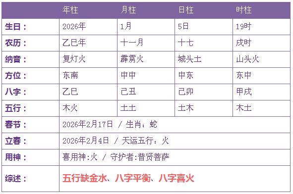 2026年1月5日出生的宝宝五行缺什么 相关文章