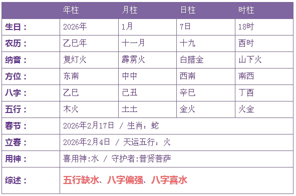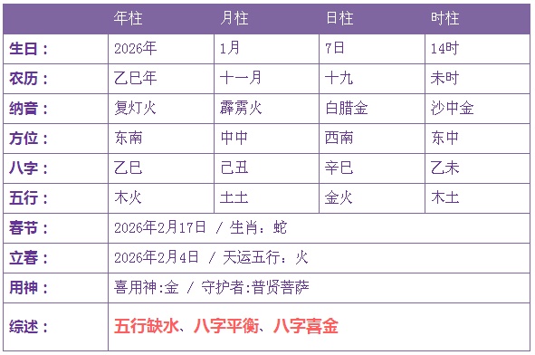 2026年1月7日生辰八字分析:公历生日:2026年 1月 7日 星期三 摩羯座 (阳历)