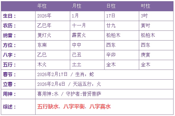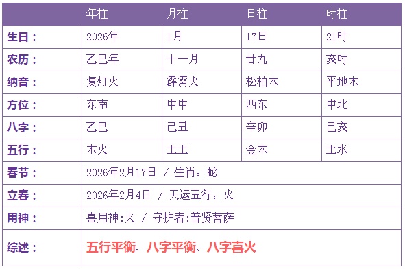 2026年1月17日生辰八字分析:公历生日:2026年 1月 17日 星期六 摩羯座 (阳历)