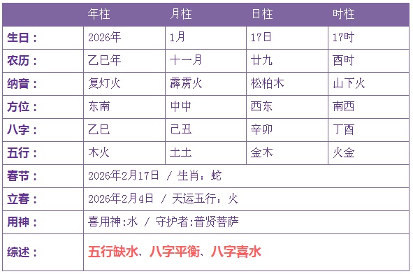 2026年1月17日出生的宝宝五行缺什么 相关文章