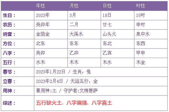 2023年3月18日15时出生的宝宝五行缺火土