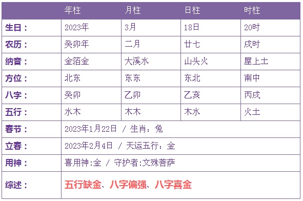 2023年3月18日1时出生的宝宝五行缺金
